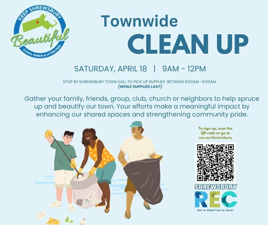 Help us keep Shrewsbury clean, beautiful and welcoming for everyone! 🍃 Our Townwide Clean Up is a great opportunity for neighbors, families, teams and community groups to come together and make a real impact by helping remove litter from parks, streets and shared spaces across town.