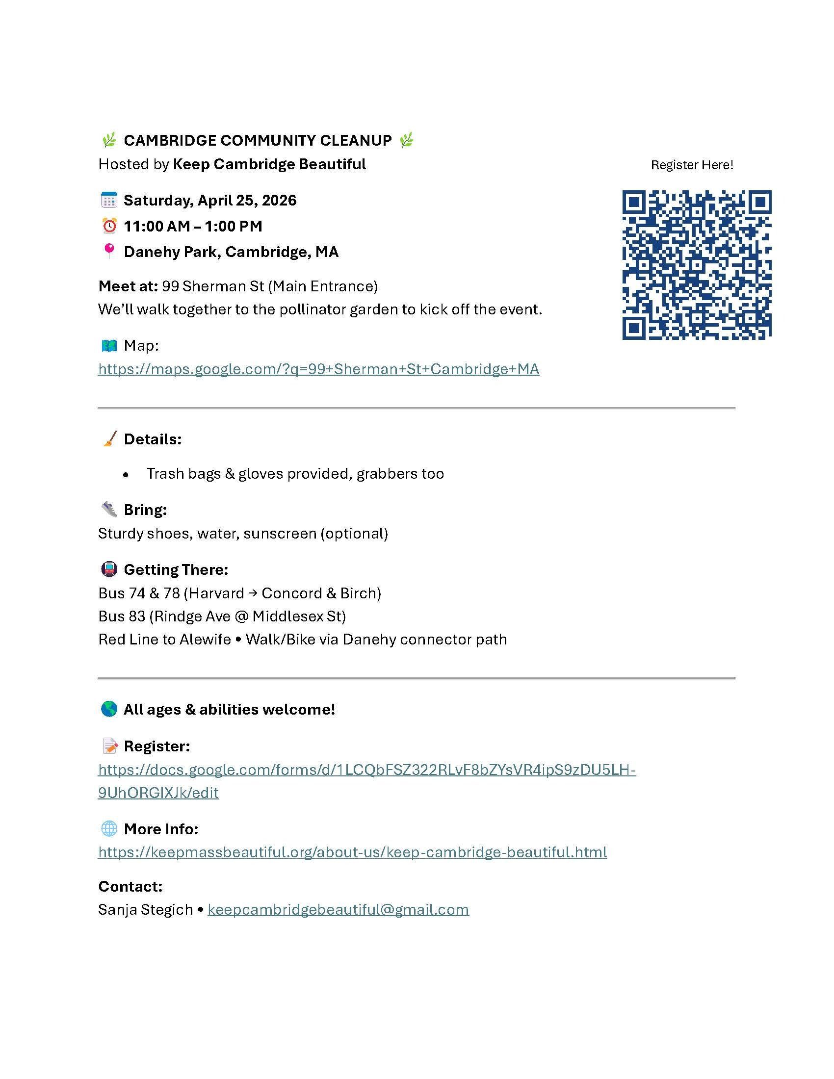Kickoff cleanup event (first one) for Keep Cambridge Beautiful chapter. The chapter will be focused on working within Cambridge communities to keep our parks, common areas clean and green.