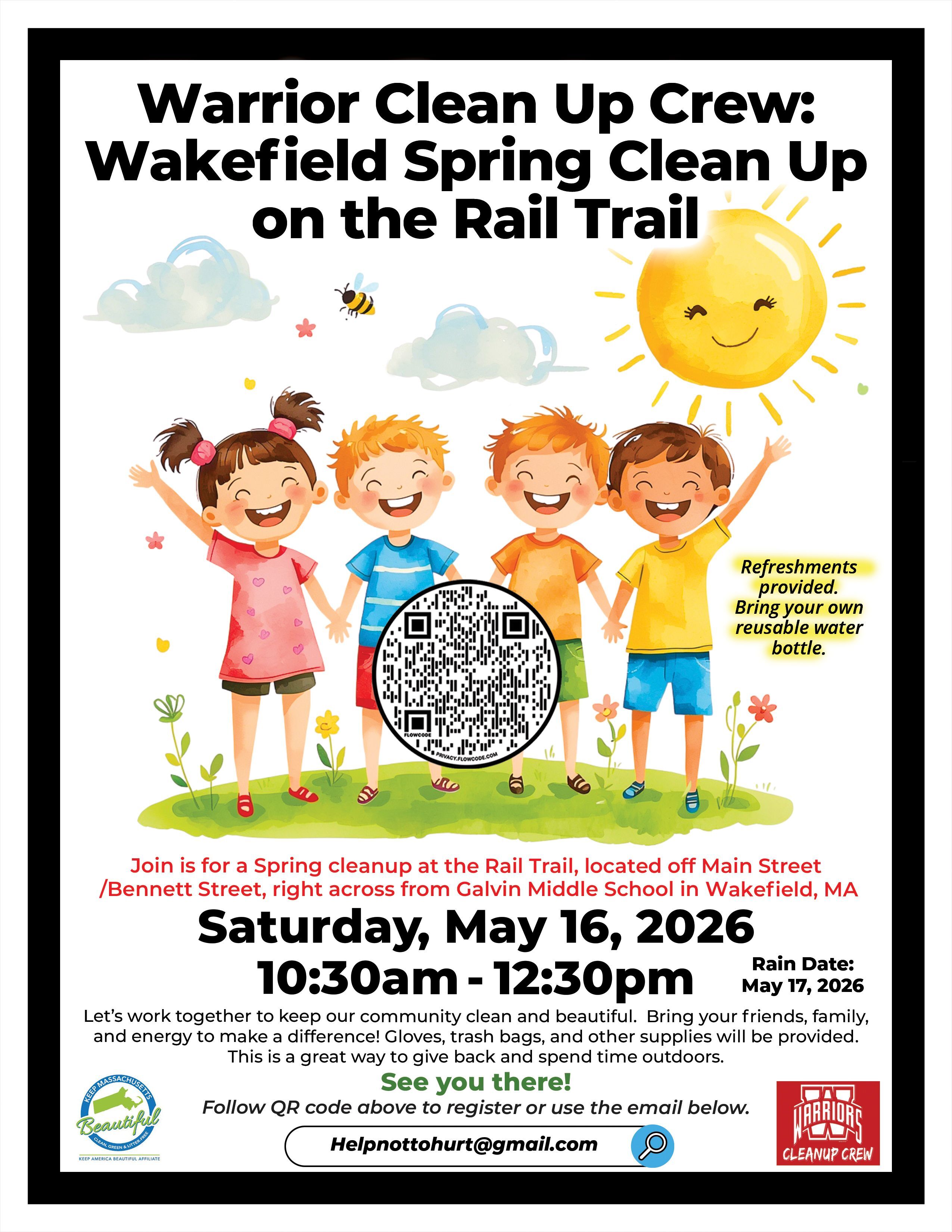 Join us for the Wakefield Rail Trail Spring Cleanup 2026 as we come together to refresh one of our town’s most loved spaces. This event is all about community, pride, and keeping Wakefield beautiful — with a fresh season and new energy leading the way. Bring your friends, your family, and your gloves — we’ll provide everything else. Let’s show up, work together, and make a visible impact.